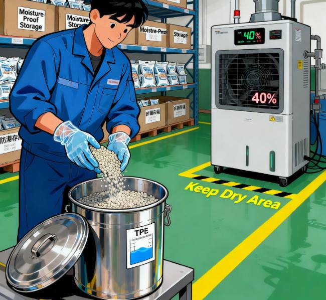 పాలిమర్ పదార్థంగా, TPE ముడి పదార్థాలు పర్యావరణ తేమకు అత్యంత సున్నితంగా ఉంటాయి. నిల్వ లేదా రవాణా సమయంలో అవి గాలి నుండి తేమను తక్షణమే గ్రహిస్తాయి, ఇది క్షీణించిన పదార్థ లక్షణాలు, ప్రాసెసింగ్ ఇబ్బందులు మరియు తుది ఉత్పత్తి నాణ్యతకు కూడా రాజీపడుతుంది. TPE మెటీరియల్‌ల కోసం సమర్థవంతమైన తేమ నిర్వహణకు నిల్వ పర్యావరణ నియంత్రణ, ఆప్టిమైజ్ చేసిన ప్యాకేజింగ్ పద్ధతులు మరియు అనుబంధ రక్షణ చర్యలను కలిగి ఉండే బహుముఖ విధానం అవసరం.