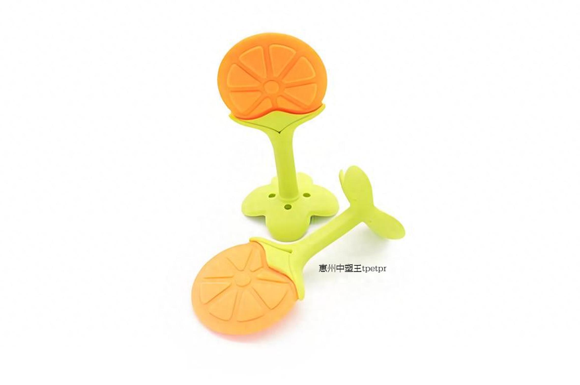 చమురు కంటెంట్‌ను మృదువుగా చేయడం: మృదుత్వాన్ని సర్దుబాటు చేయడానికి ఈ పదార్ధం కీలకం. ఎక్కువ కంటెంట్, మృదువైన పదార్థం మరియు దీనికి విరుద్ధంగా. ఉదాహరణకు, మృదువైన చమురు కంటెంట్ తక్కువగా ఉన్నప్పుడు, TPR పదార్థంతో చేసిన టీథర్ కొంచెం కఠినమైన ఆకృతిని కలిగి ఉంటుంది, అయితే అధిక మృదువైన నూనె కంటెంట్ ఉన్న టీథర్ కేవలం దంతాలు కలిగి ఉన్న పిల్లలకు మృదువైన స్పర్శను అందిస్తుంది మరియు చిగుళ్ళ అసౌకర్యాన్ని తగ్గిస్తుంది.